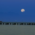東京タワーを遠く望む神奈川県の高台から、昇ってくる満月が重なるのを待ちました。東京タワーから離れると東京タワーは小さく見えるようになりますが、月は地球上では見える大きさはほとんど変わりませんので、東京タワーに比べて月が大きく写ります。