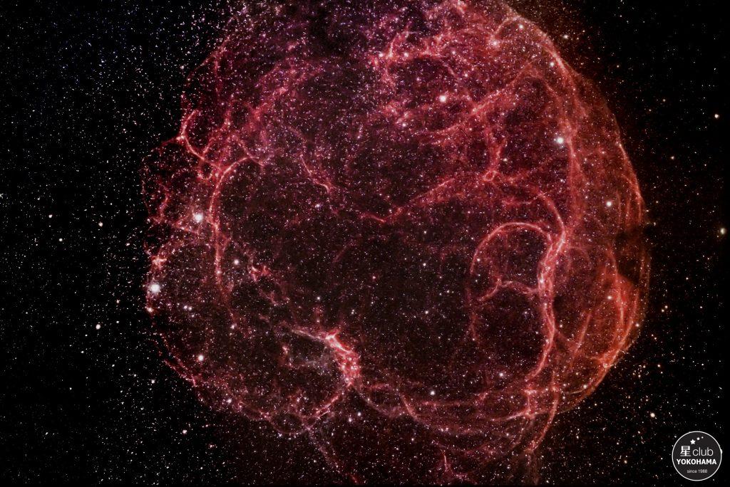 今回の「スパゲッティ星雲」(sh2-240)は、ぎょしゃ座とおうし座の境界線付近にあり、超新星?の名残の為に非常に淡く撮影には難しい星雲。今回は1 月に紹介した「ミルクポット星雲」の撮影経験を活かしてチャレンジしてみました。⾧時間露光と撮影枚数を倍にして撮影し、結果10 分の露出で2 時間(12 枚)の撮影となりました。