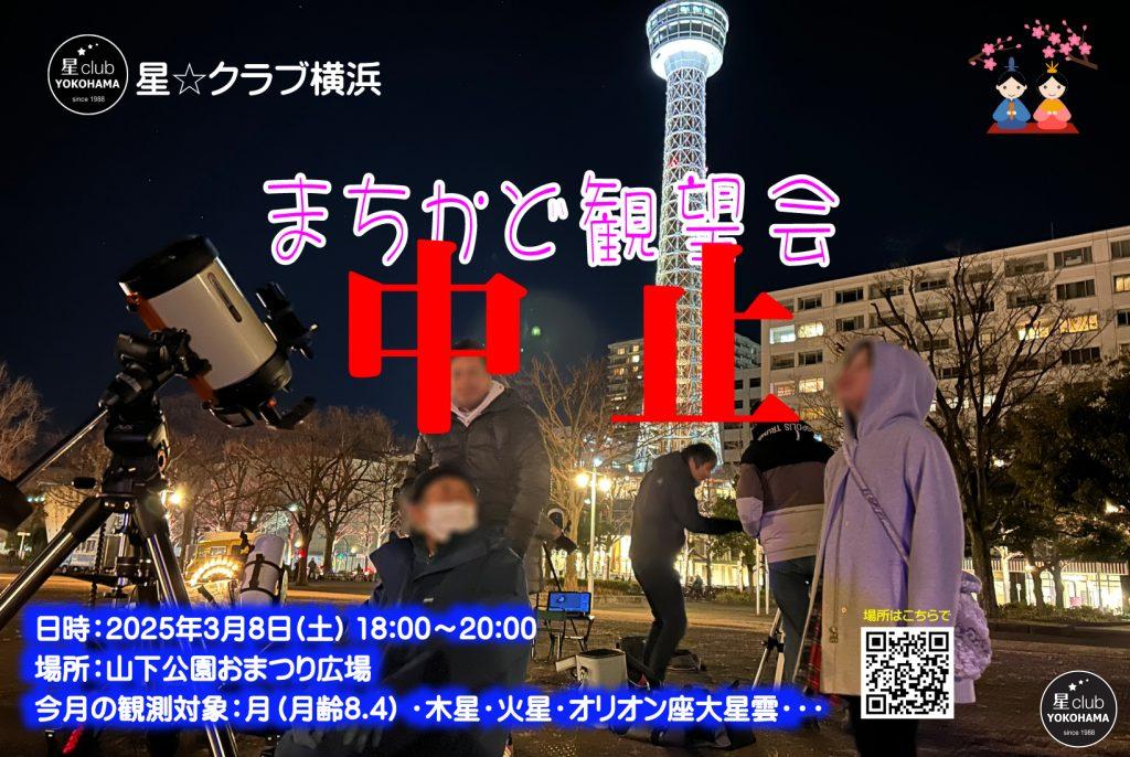 3月の「まちかど観望会」は予報が悪天候の為、中止となりました