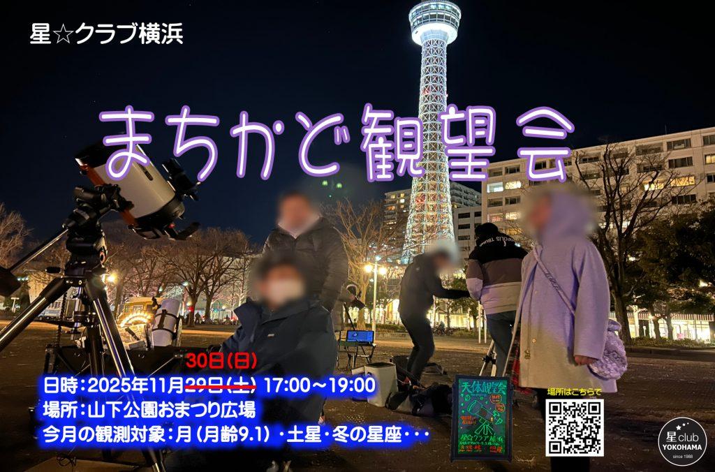 クラブ主催(恒例)「まちかど観望会」明日30日(日)に延期になりました!
